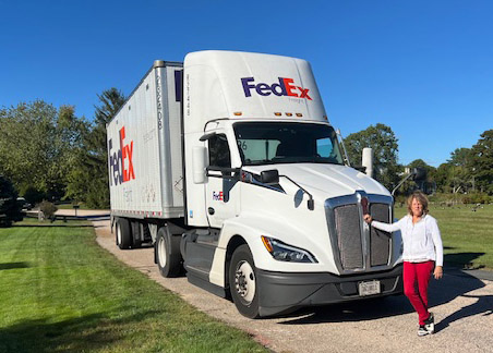 October 1, 2025: Jean greets the huge truck that delivers 540 copies of "What Do Toes Do?"